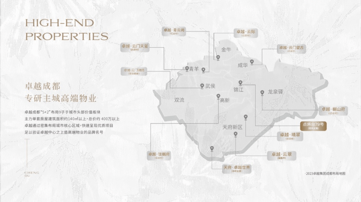 5+2核心城区凯发app◈ღ✿,选址均在城市头部价值板块◈ღ✿,主力单套房屋建筑面积约140㎡以上◈ღ✿,总价约400万以上◈ღ✿。卓越通过密集布局城市核心区域◈ღ✿,快速呈现优质项目◈ღ✿,足以验证卓越中心之上造高端物业的品牌名号◈ღ✿。